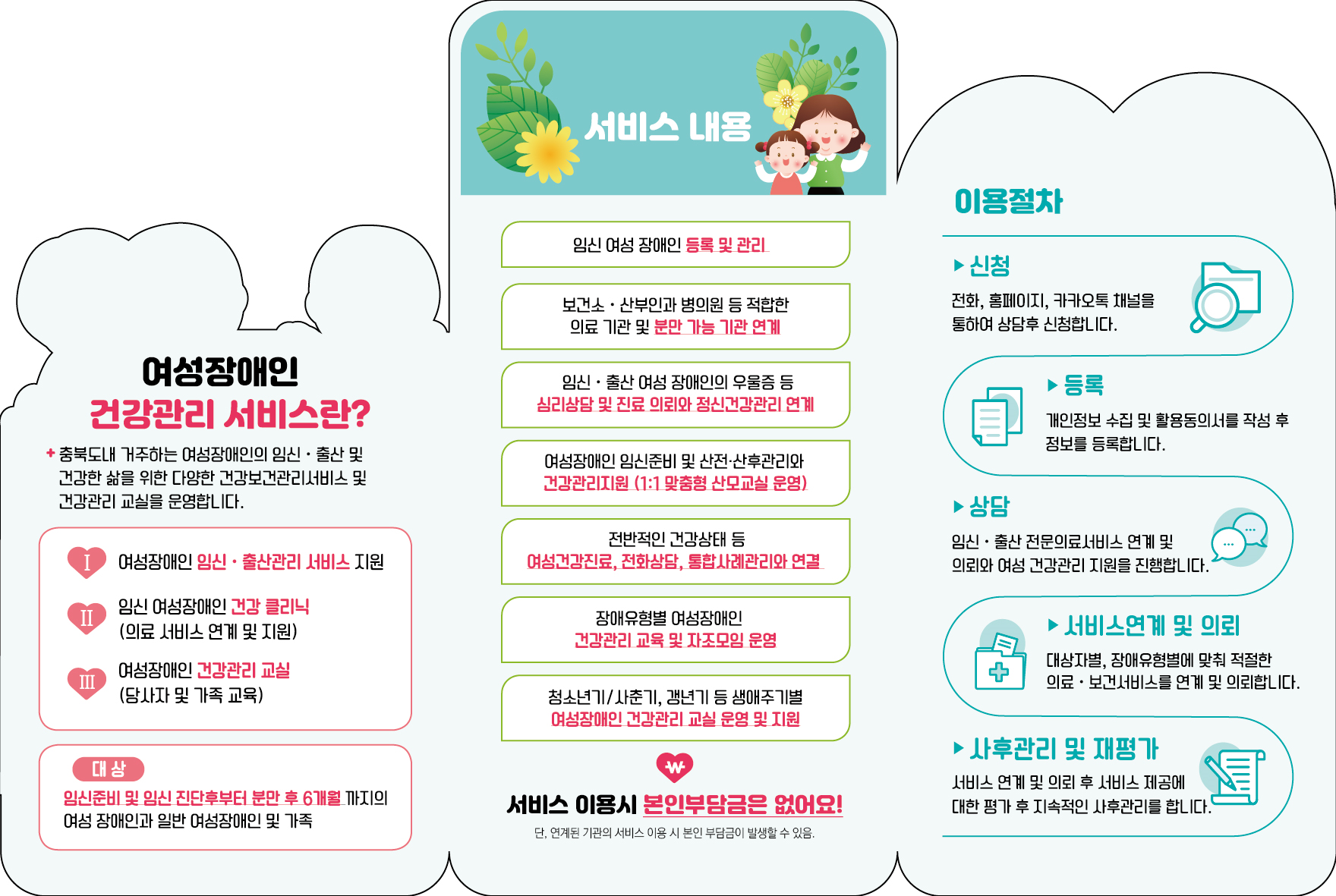 여성장애인 모성보건사업 안내 리플릿입니다. |