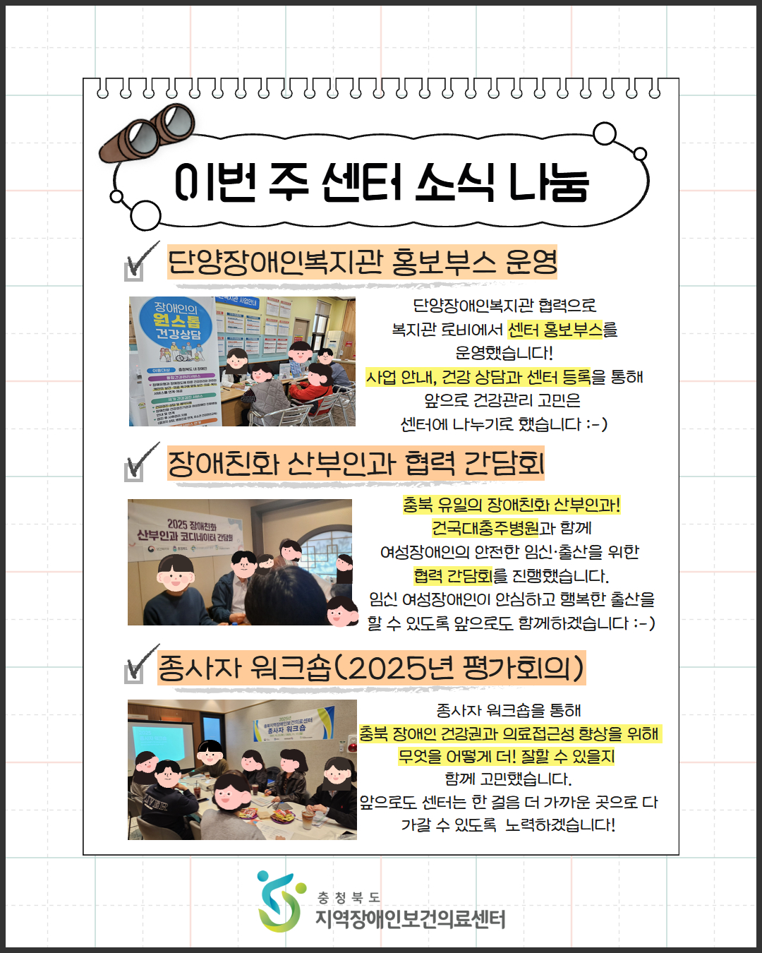 충북지역장애인보건의료센터에서 알려드리는 보건의료/복지, 센터소식