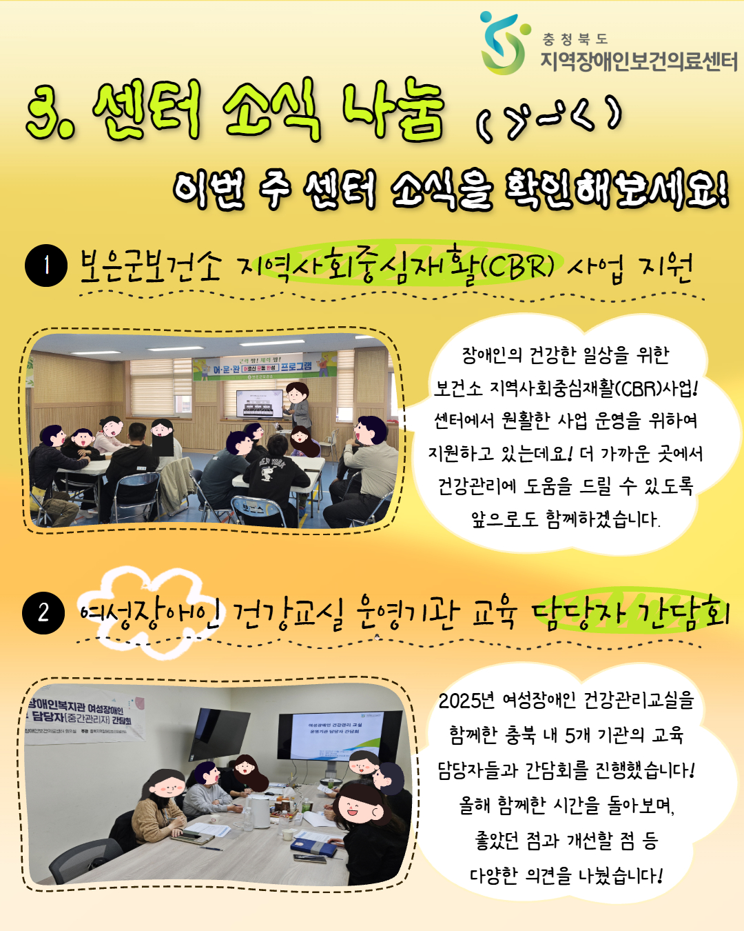 충북지역장애인보건의료센터는 항상 여러분의 건강한 일상을 응원합니다!