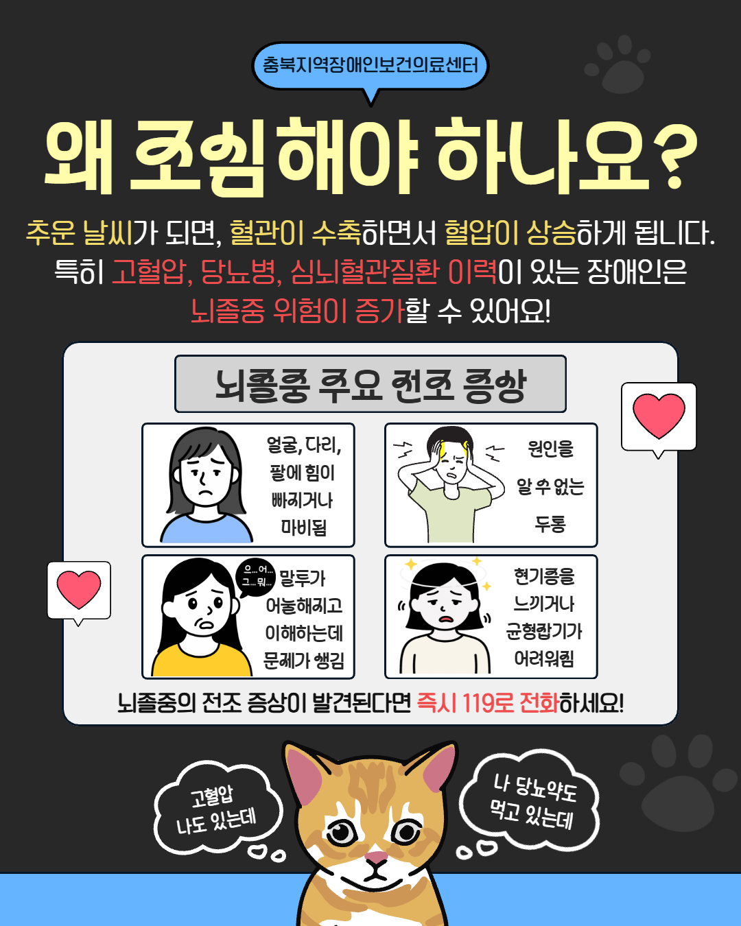 추운날씨 뇌졸중 주의보! 충북센터와 함께 뇌졸중 예방법 알아볼까요?