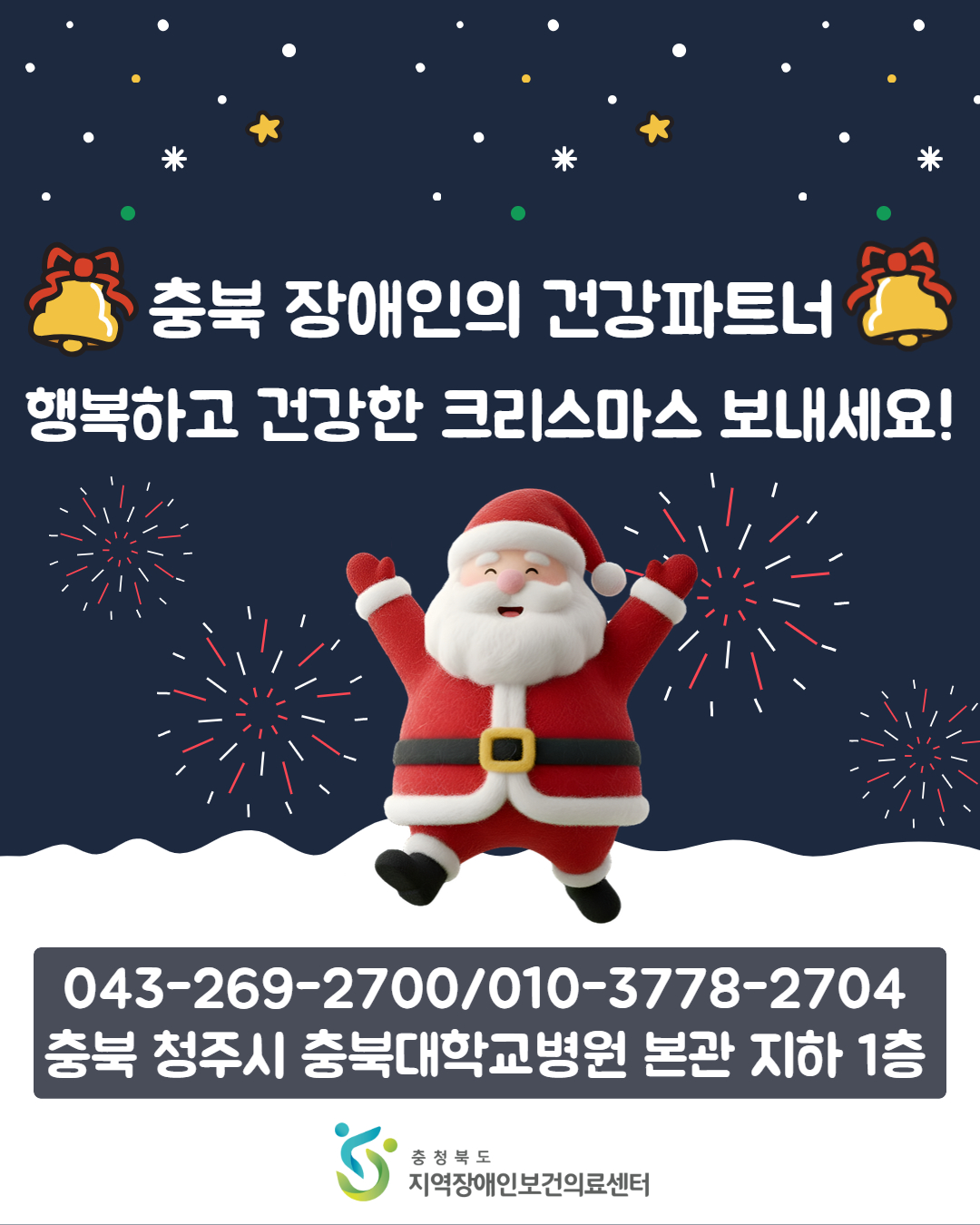 크리스마스에도 건강이 최고! 충북지역장애인보건의료센터는 앞으로도 건강한 일상을 위한 정보를 전해드릴게요.
