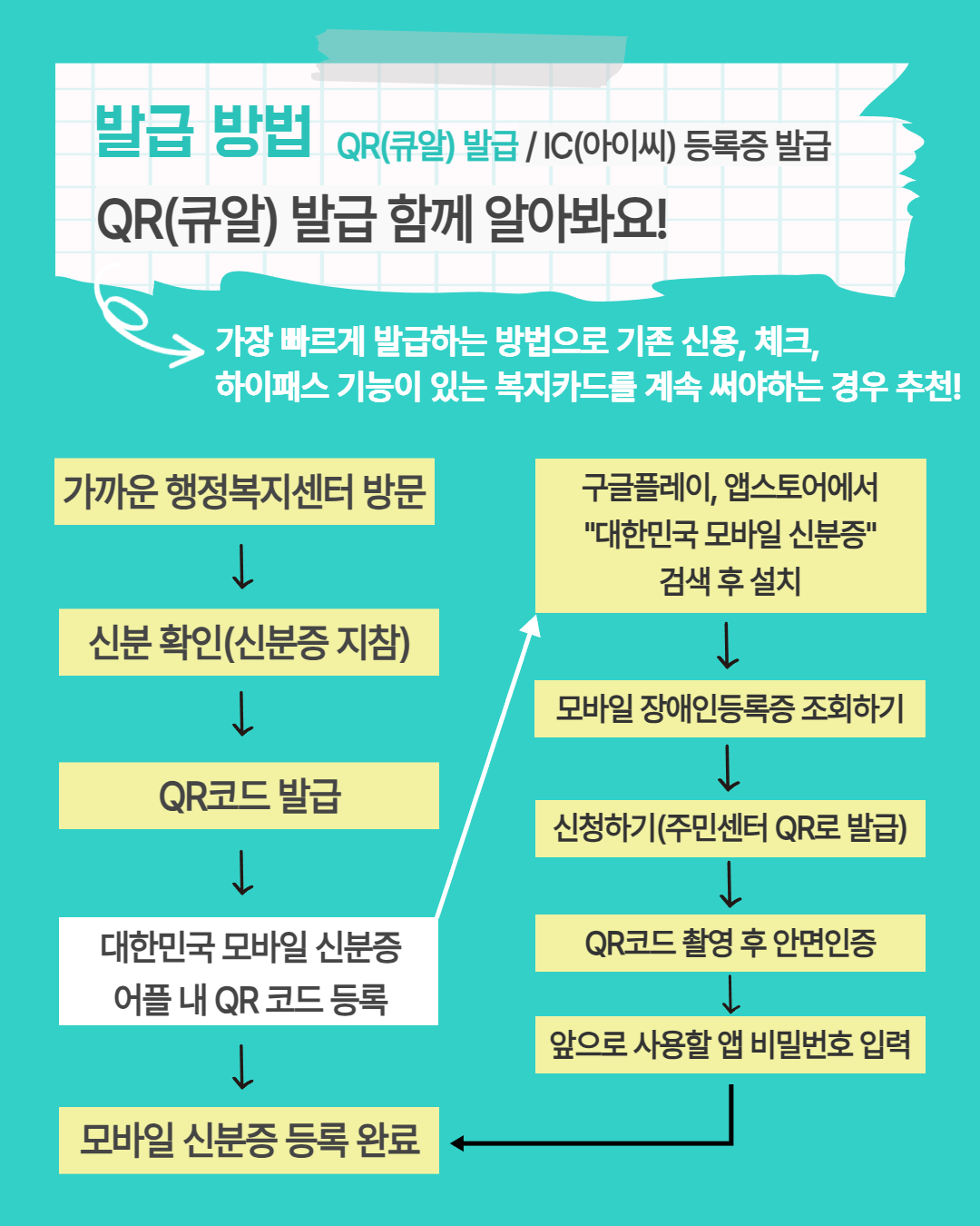---> 카드뉴스에서 모바일 장애인등록증 발급 절차와 팁을 확인해보세요!