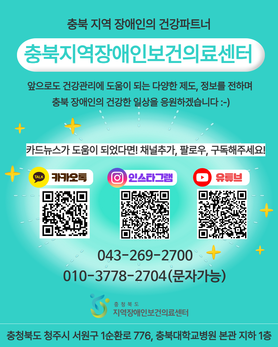 - 충북지역장애인보건의료센터 043-269-2700