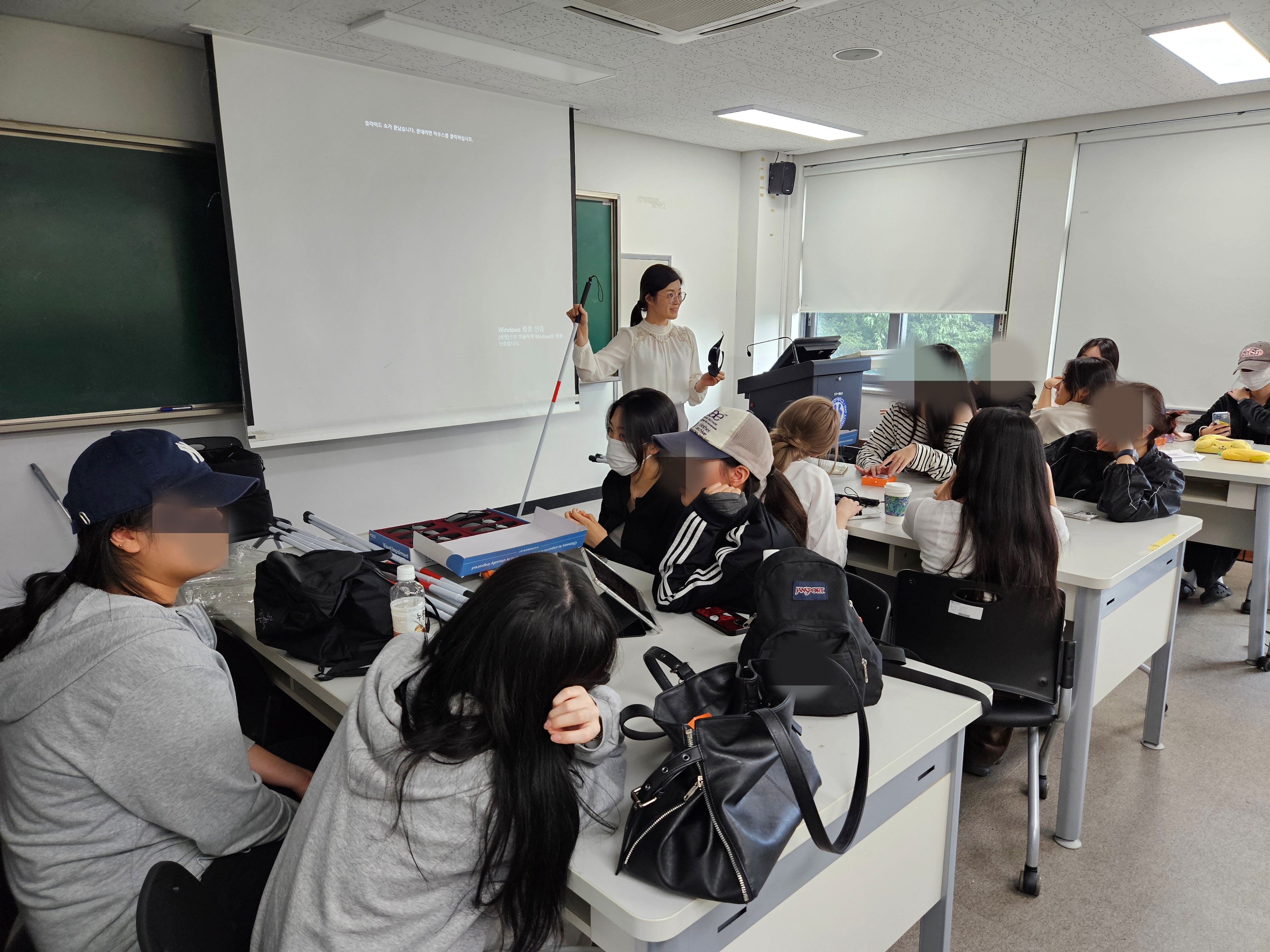 1차시 '장애인 건강권 및 건강권법의 이해' 에 대한 이론 교육이 진행되고, 이어 2차시 치위생학과의 특성에 맞춤형으로 시각/ 청각 장애인을 대상으로 임상에서 경험할 수 있는 상황에 대한