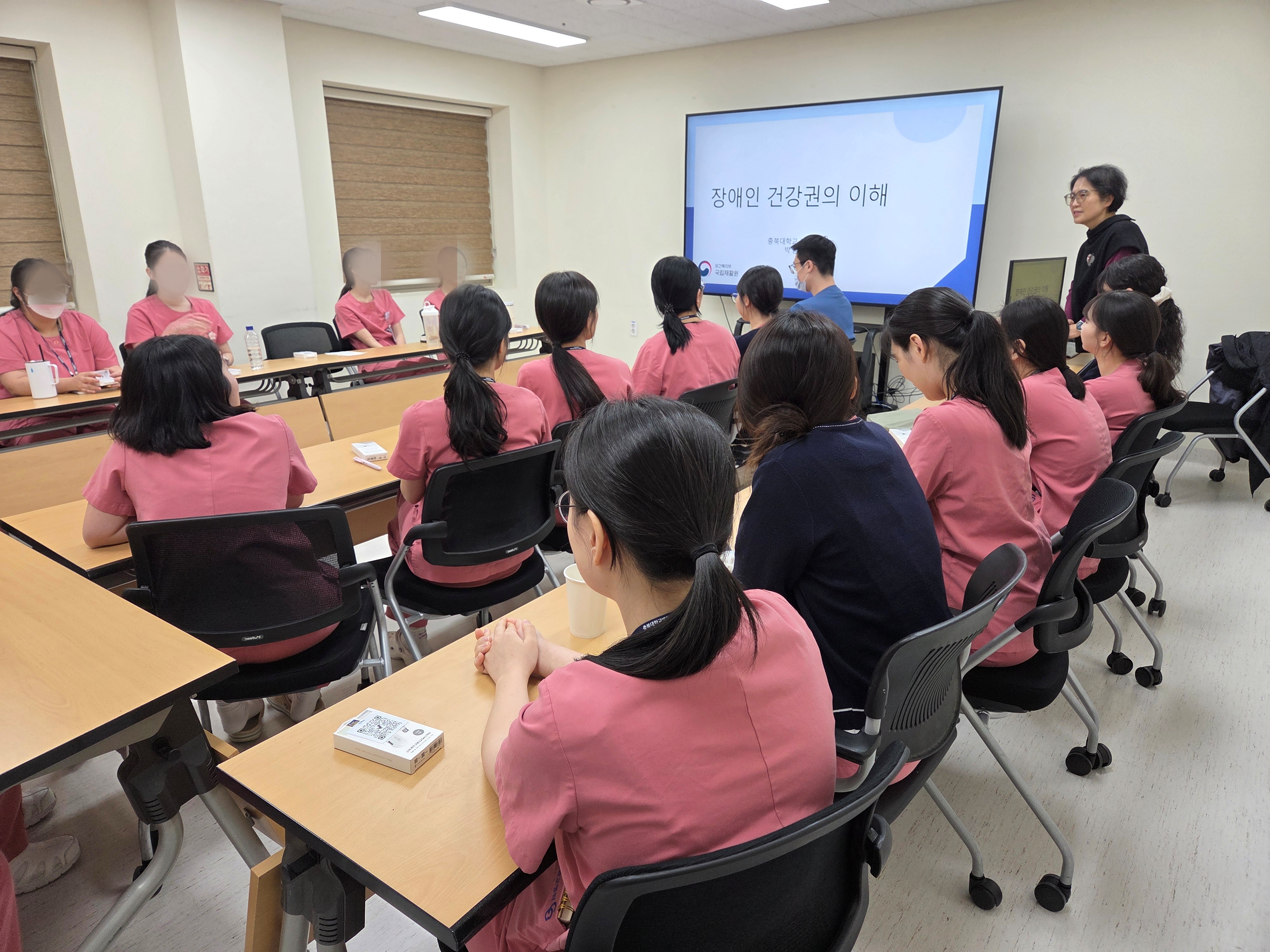 본 센터에서는 2025년11월27일 충북대학교병원 신규간호사들을 대상으로 장애인 건강권 교육을 진행하였습니다.