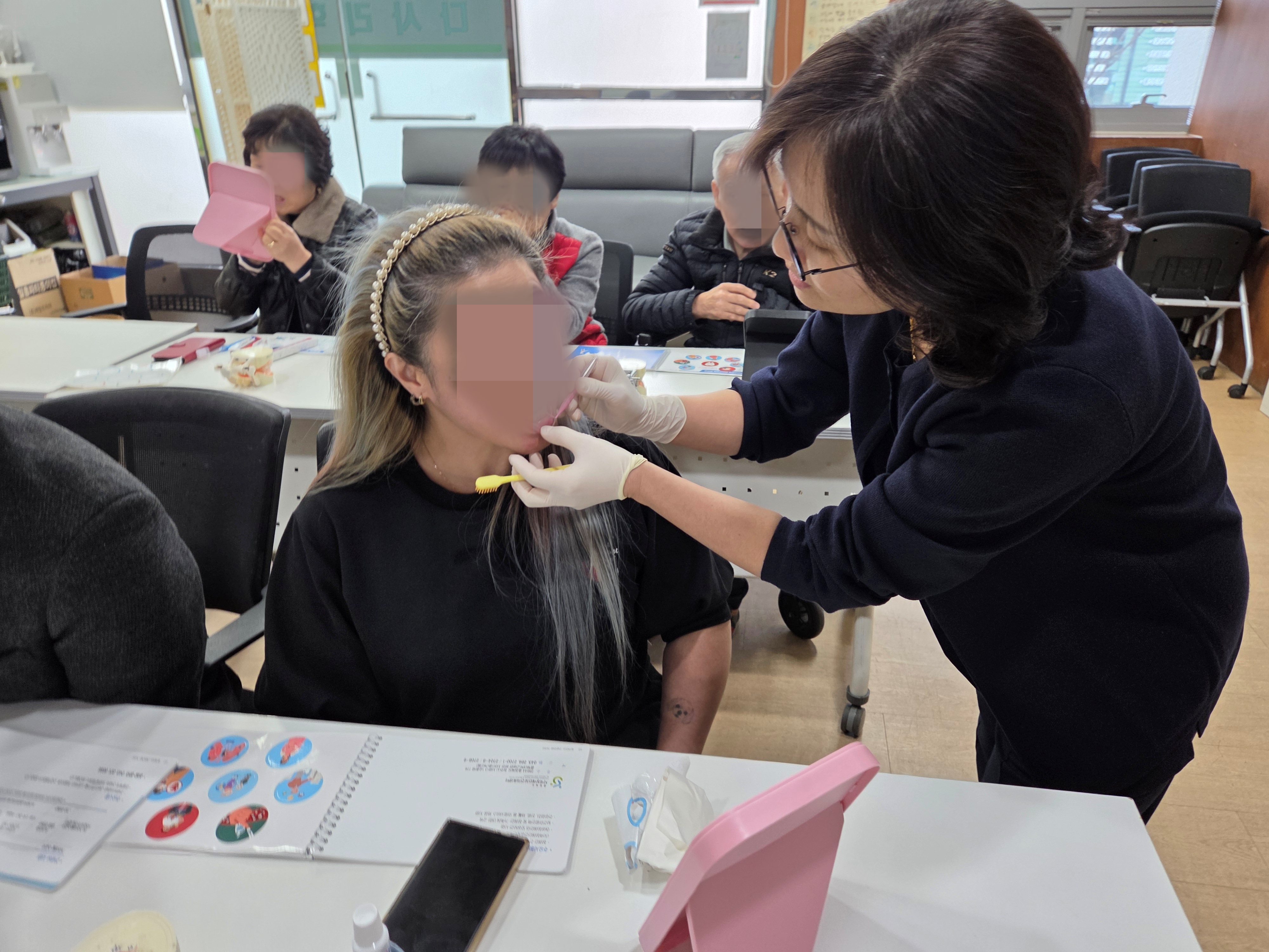 센터에서 제작한 「발달장애인을 위한 구강관리」 책자를 배부하여 실습 중심으로 운영되었습니다.