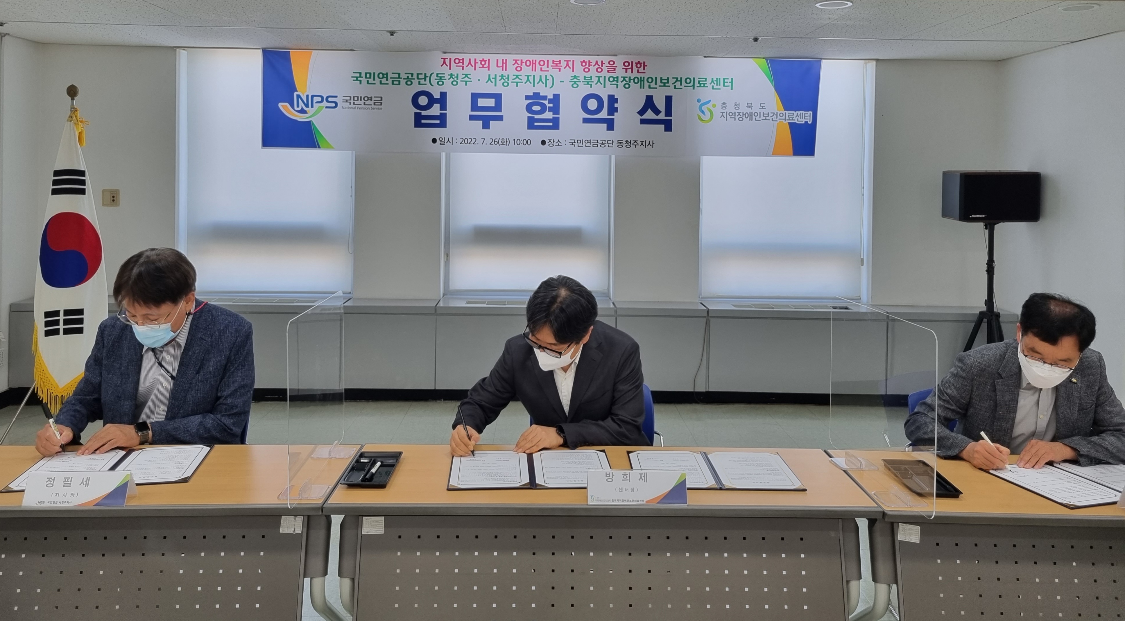 센터는 7월 26일 국민연금공단 청주지사와 업무 협약을 진행하였습니다.