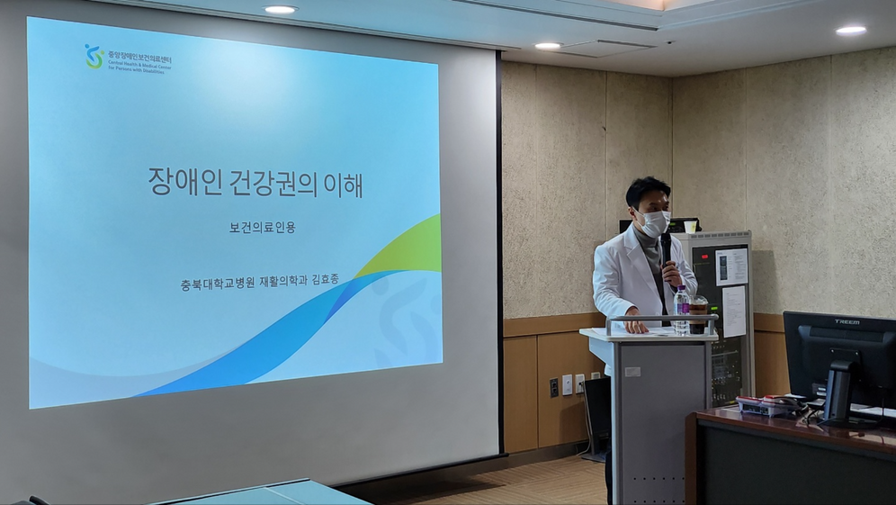 충북대학교병원 재활의학과 김효종교수님께서 보건소 CBR사업 담당자를 대상으로 장애인 건강권 교육을 진행해주셨습니다.