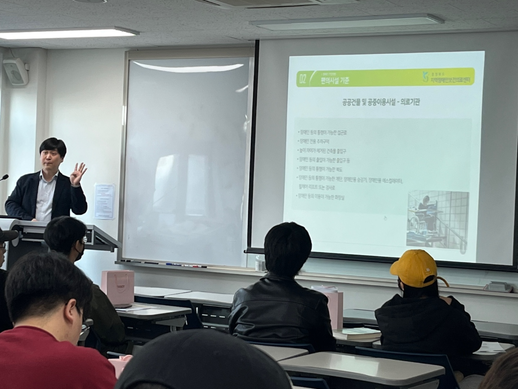 센터는 지난 3월 27일 청주대학교 물리치료학과 재학생 대상으로 장애인 건강권의 이해 교육을 실시하였습니다.